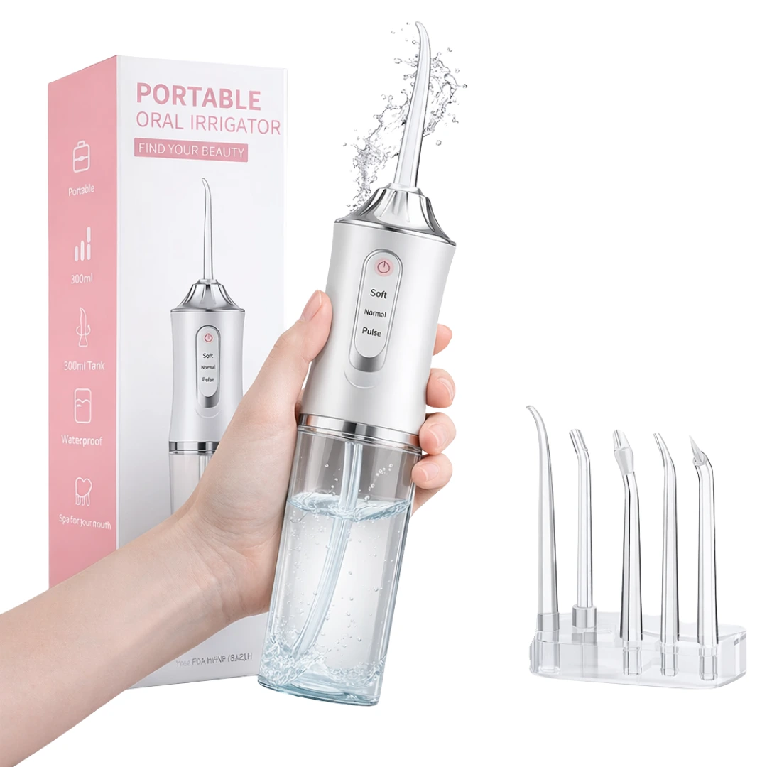 Tutustu uuteen akkukäyttöiseen Water flosseriin, joka tarjoaa edistyneen ratkaisun nieluproppujen ja hammasvälien puhdistukseen. Tämä laite ei ainoastaan puhdista tehokkaasti, vaan myös suojaa suusi herkkiä alueita tarjoamalla säädettävän vedenpaineen.